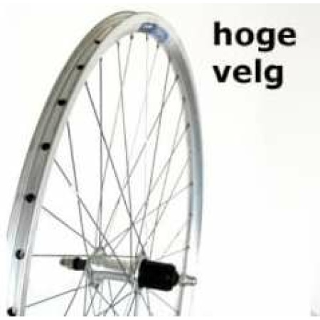 • Merkloos Achterwiel 28 freewheel vaste as velg Hoog (37-622)