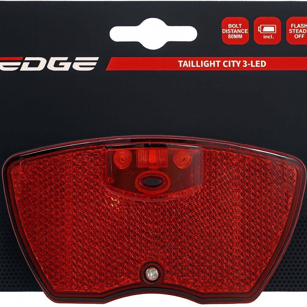 Het Edge City dragerachterlicht 3 Led is een goed zichtbaar achterlicht met 3 heldere ledlampjes. Dit achterlicht is tevens voorzien van een reflector. De verlichting is gemaakt van duurzaam kunststof, dat ook nog eens waterafstotend is.