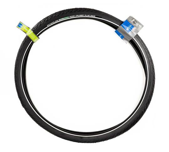 Schwalbe buitenband Road Cruiser Plus in de kleur zwart. Maatvoering 28 x 2.00, ERTO 50-622. Urban, individueel en dynamisch. De Road Cruiser Plus maakt indruk met zijn aangename profieldesign. Het meest opvallende kenmerk van de Road Cruiser Plus zit op het loopvlak en heet Green Compound. Een rubber, gemaakt uit hernieuwbaar en gerecycled ruw materiaal, en uitgerust met de uiterst effectieve 3mm sterke PunctureGuard lekbescherming beschermd.
